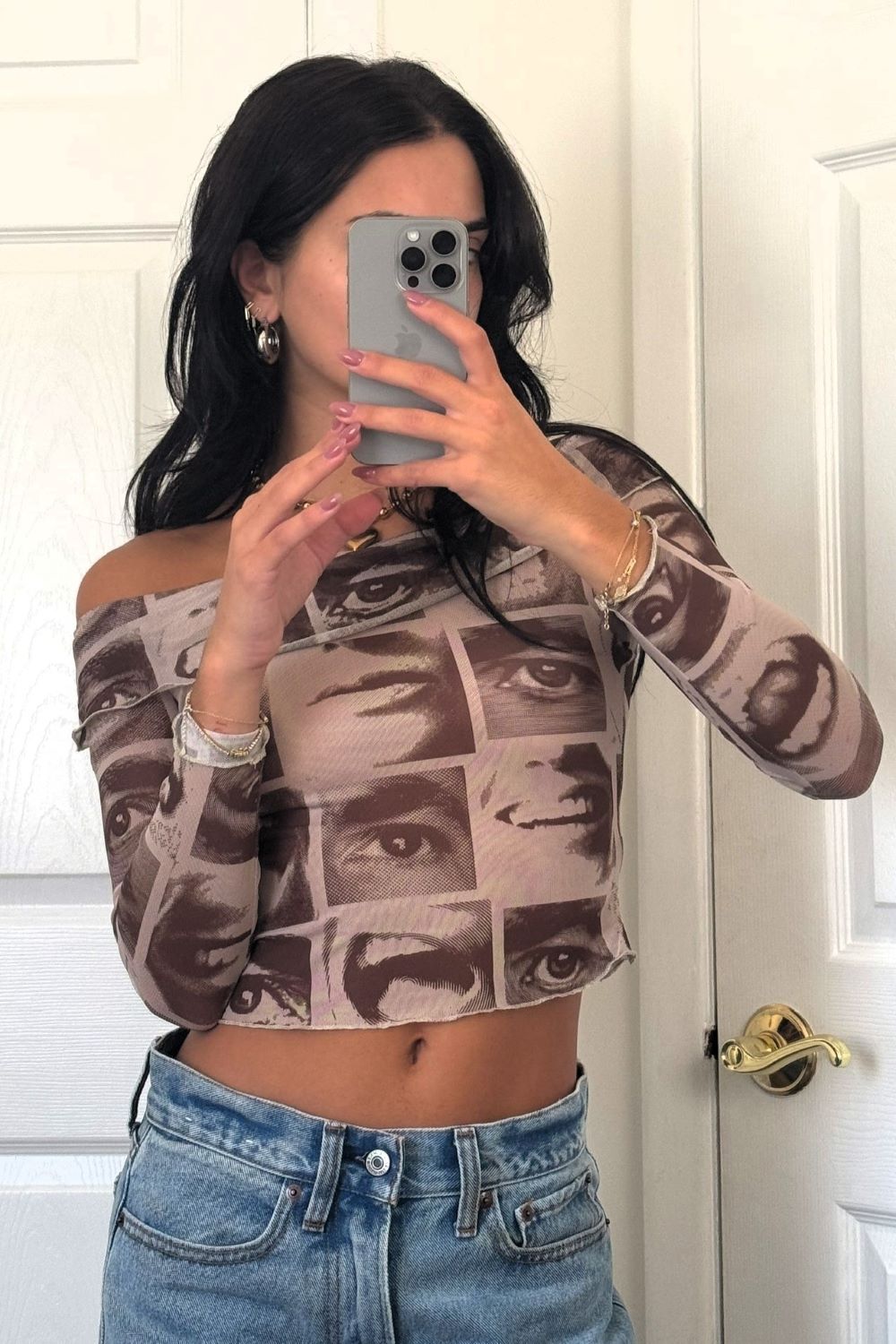 Show off your style with the Be Real Mesh top! It's definitely the perfect way to express yourself without saying a single word. With its unique off-shoulder style and photo-real print, this top will have heads turning! So, go ahead and make a statement - but don't be two-faced!